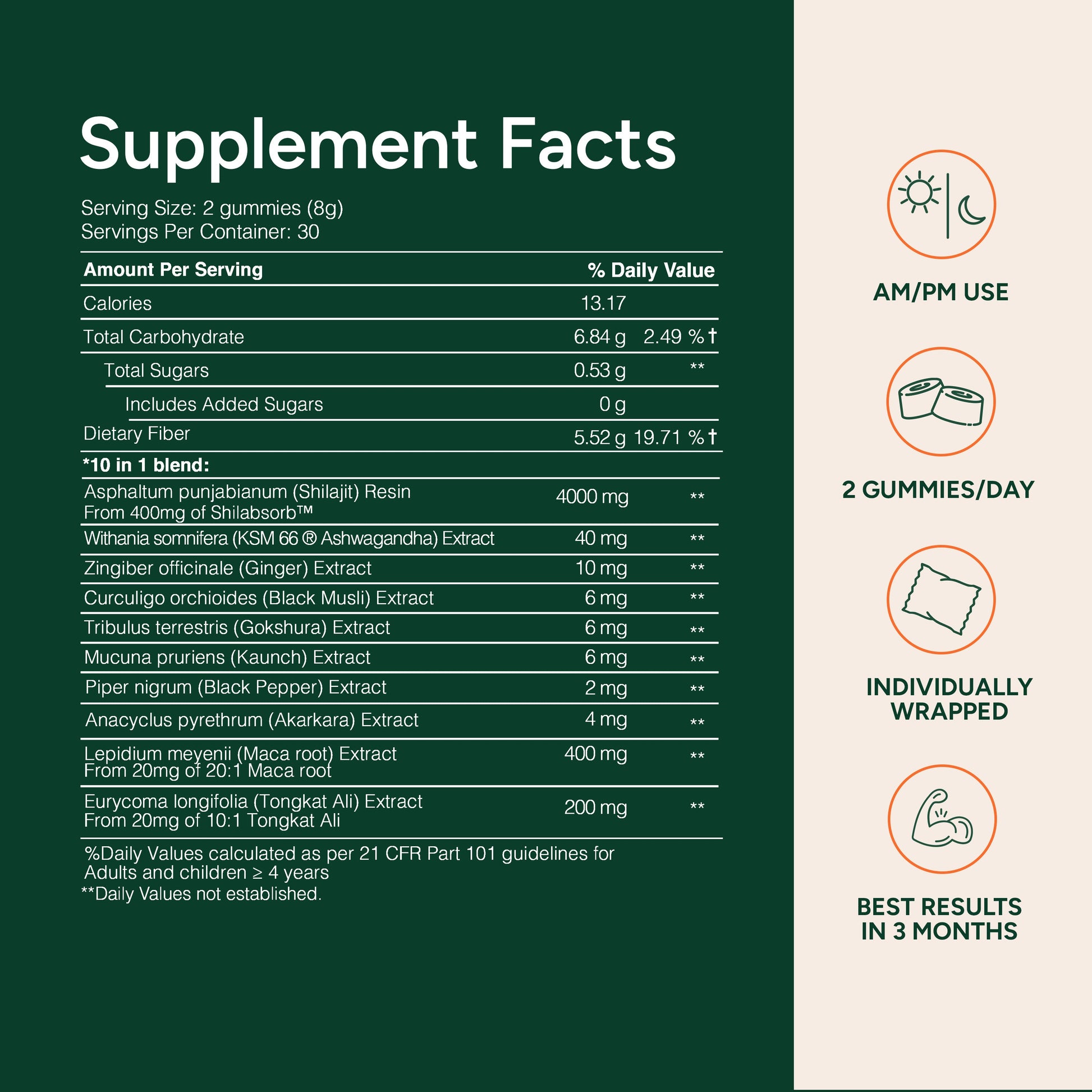 Boosts energy, strength, and testosterone while reducing cortisol and enhancing mood & cognition